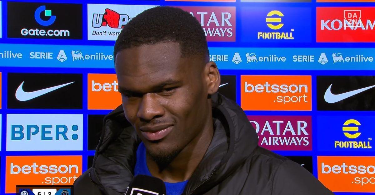 北京时间1月24日,在意甲第22轮的比赛中,国际米兰在开场23分钟就两球落后的情况下,最终连进六球主场6-2逆转战胜比萨,赛后此战替补出场并在第86分钟打进本队第五球的博尼接受了DAZN的采访。